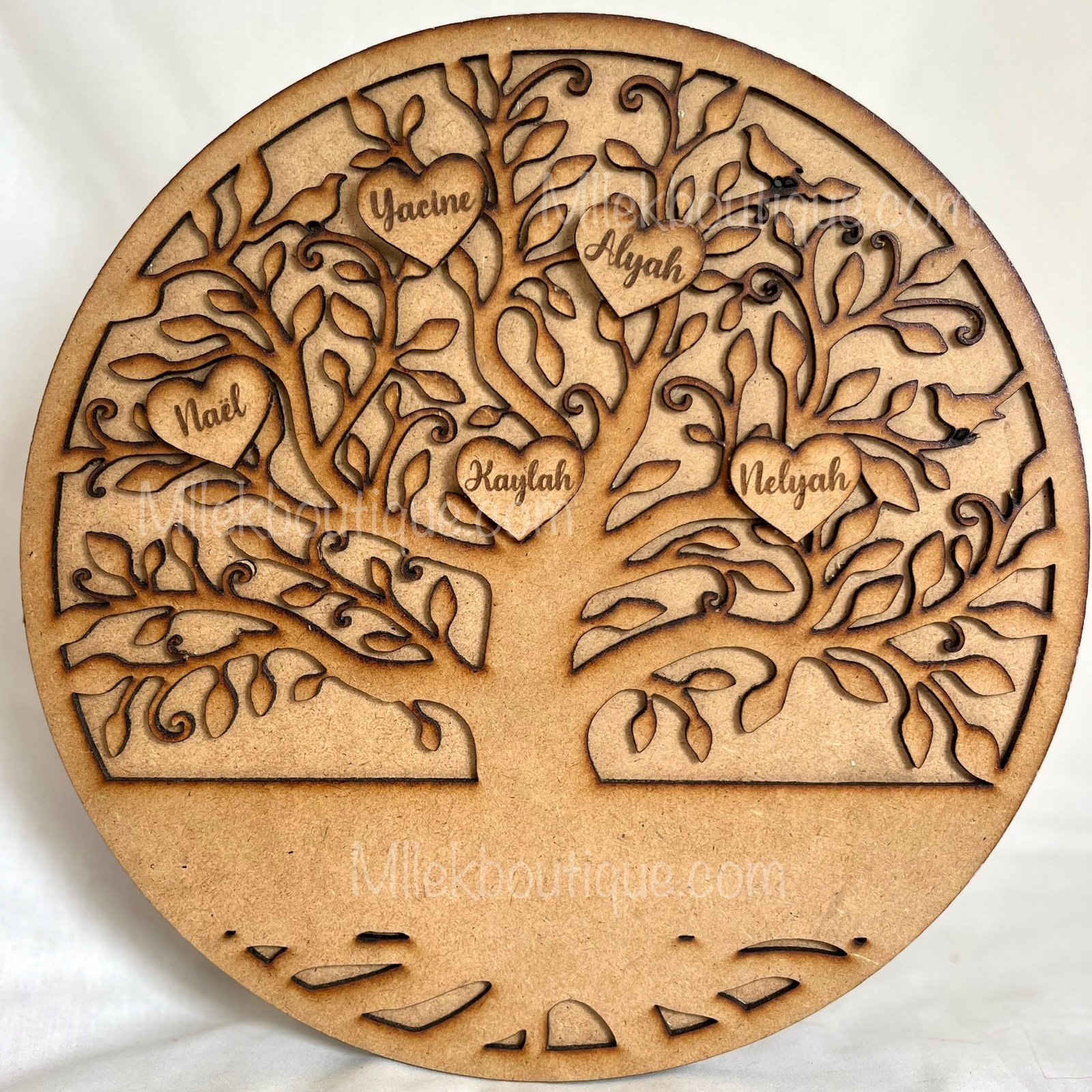 Arbre de Vie en Bois Personnalisé – Prénoms de la famille gravés