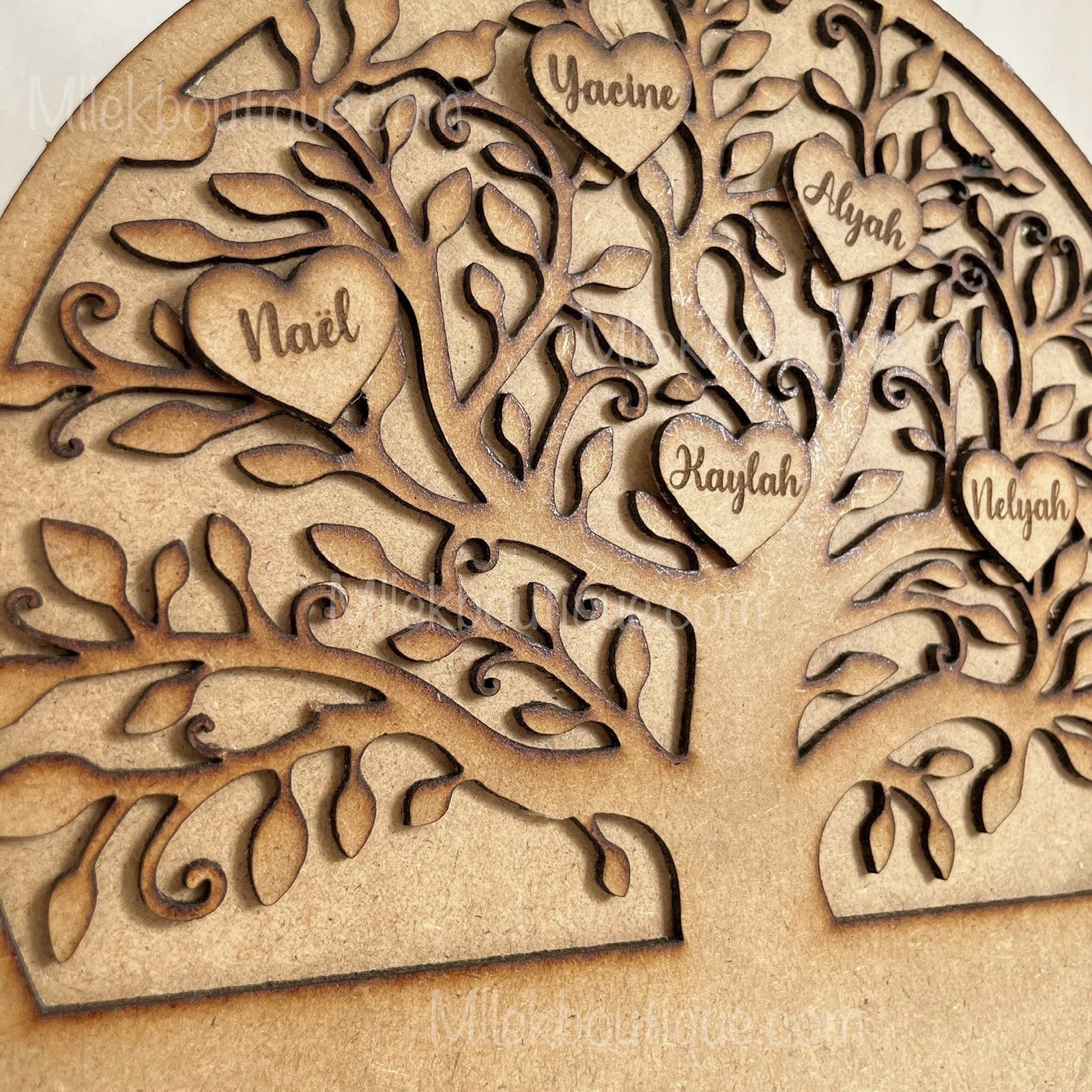 • Design : Arbre de vie circulaire avec des cœurs personnalisés