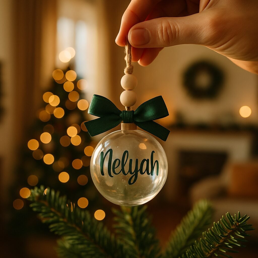 ✨ Boule de Noël personnalisée avec Prénom vert sapin ✨