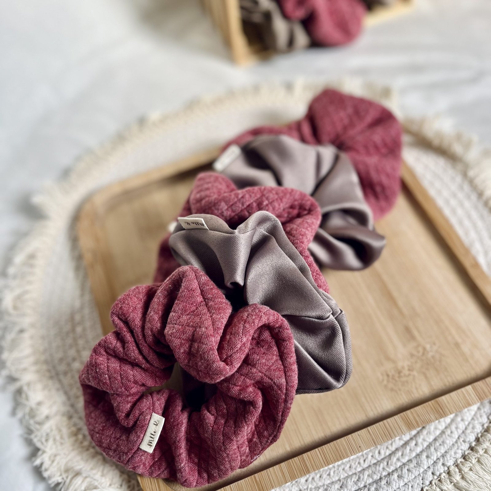Apportez une touche chic et intemporelle à vos coiffures avec notre chouchou Élégance Bordeaux & Taupe Satiné. Plus qu’un simple élastique, c’est un véritable accessoire de mode qui sublime vos cheveux tout en douceur.