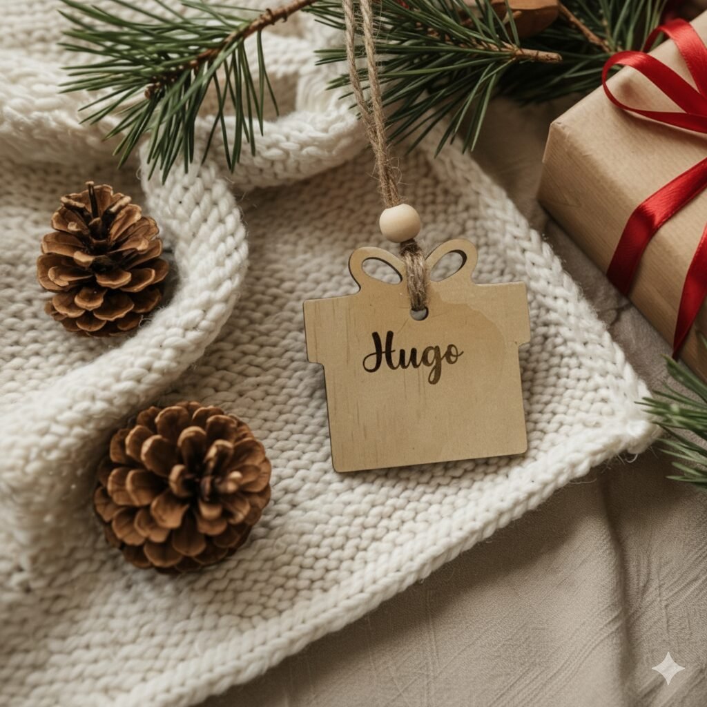 Décorations de Noël personnalisées en bois – Prénom gravé & formes au choix
