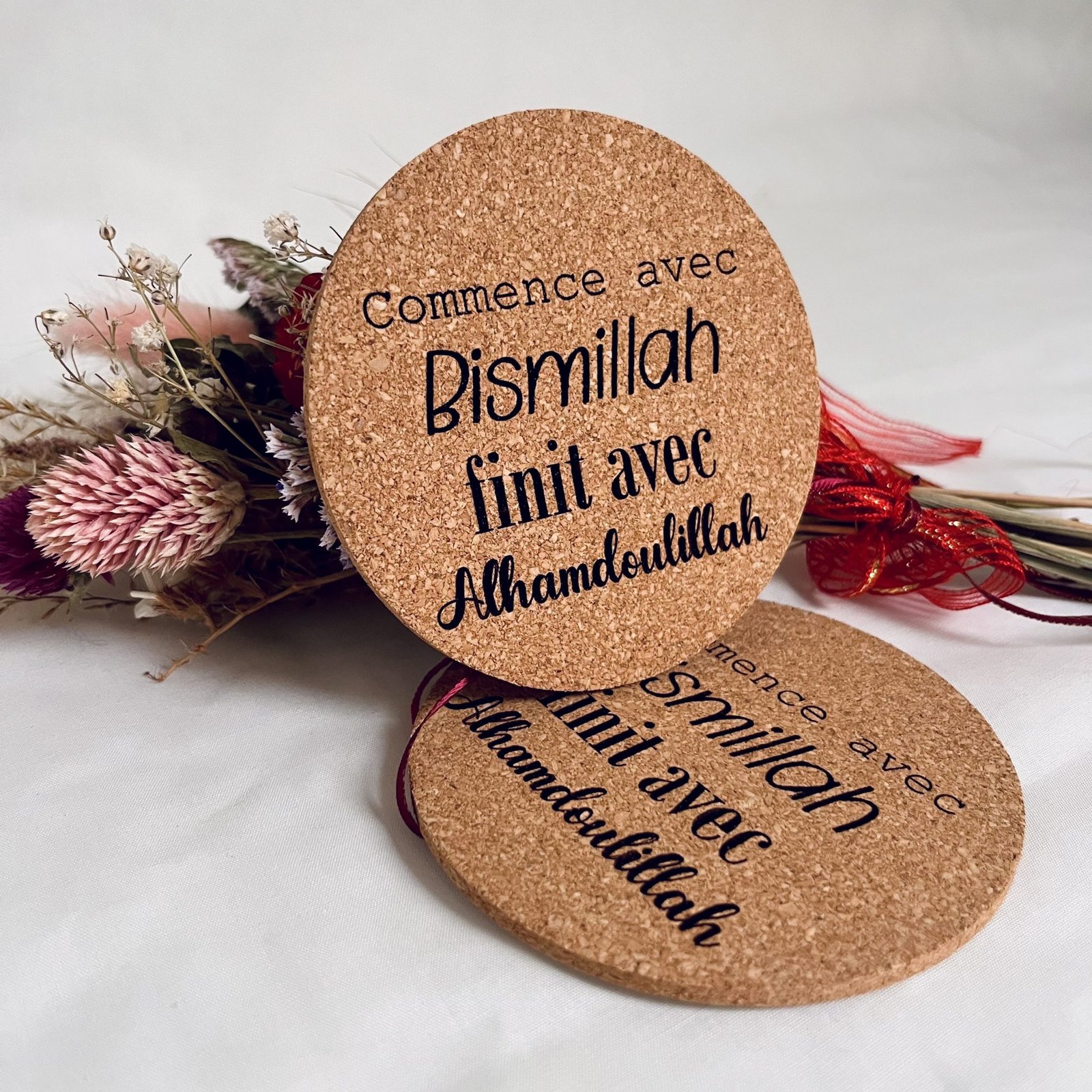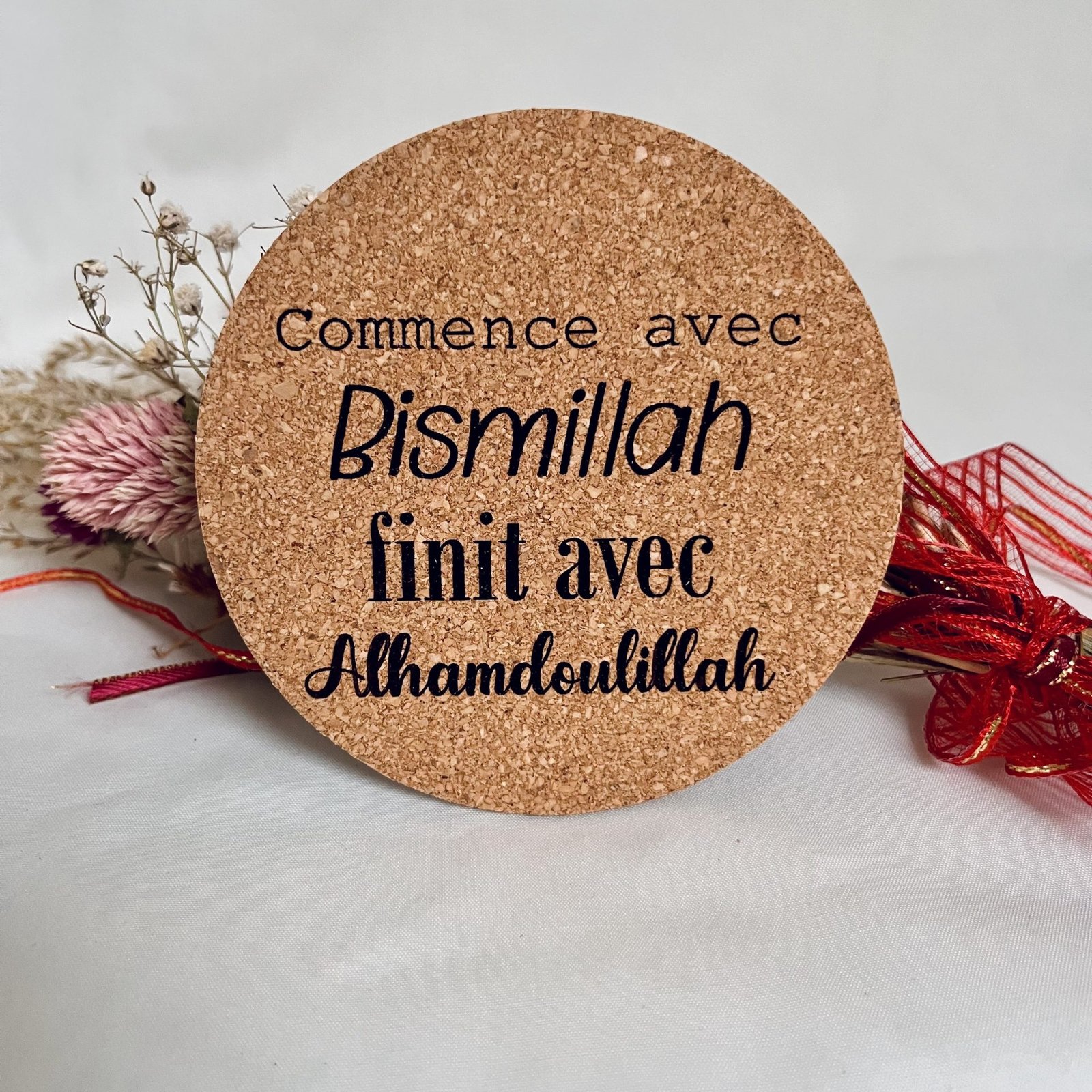 Dessous de verre en liège – Commence avec Bismillah et finit avec Alhamdoulillah