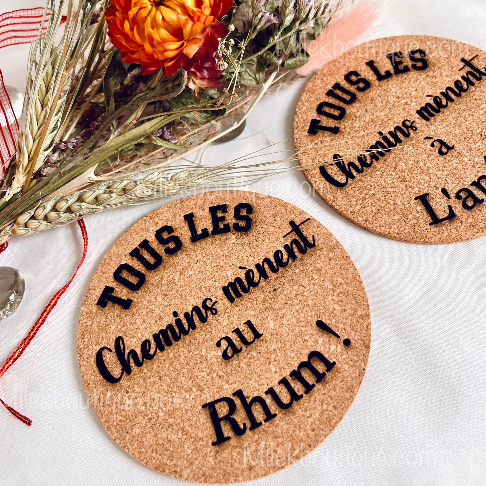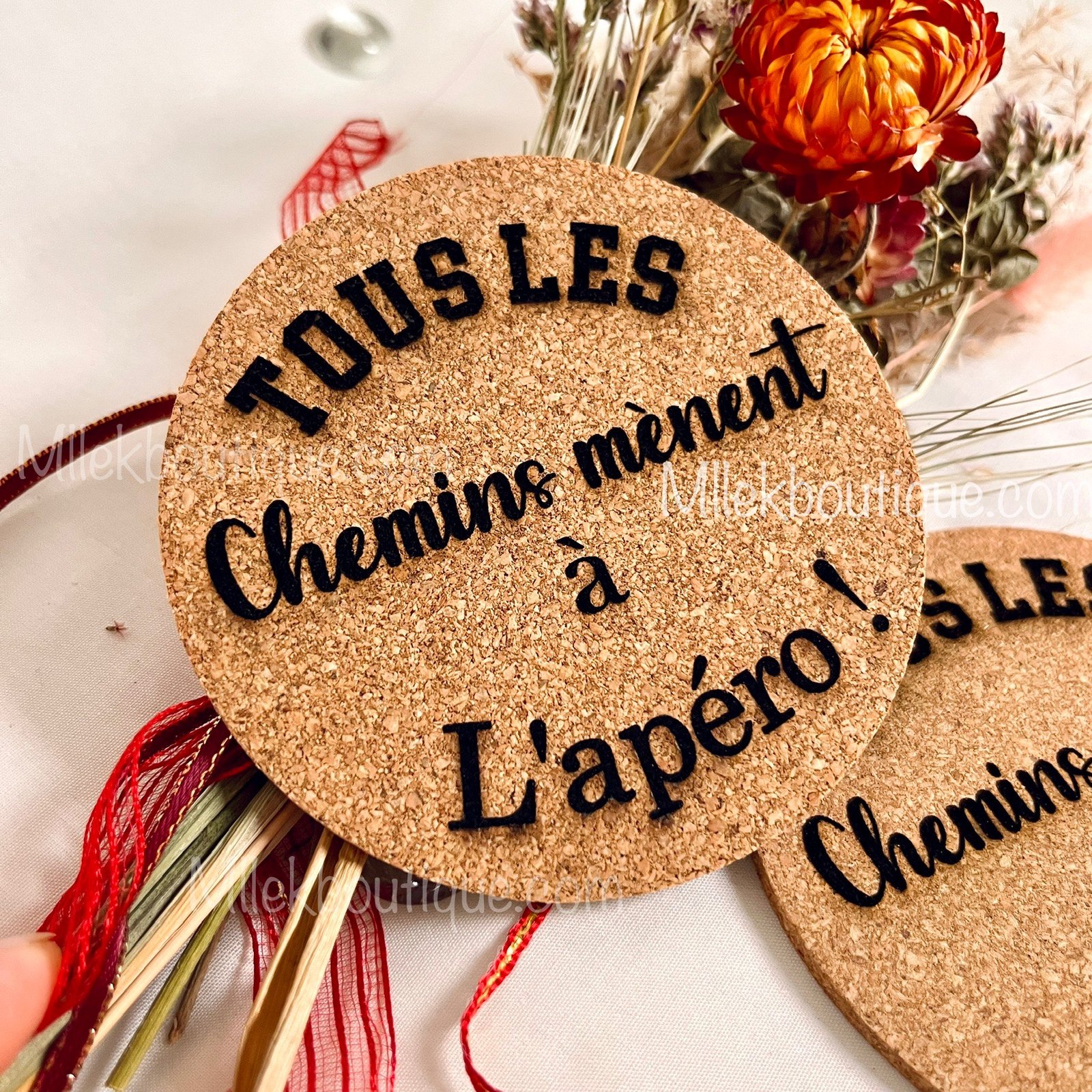 Protégez vos tables avec style grâce à ces dessous de verre en liège faits main ! Alliant praticité et humour, ils apporteront une touche conviviale et amusante à vos moments de partage.