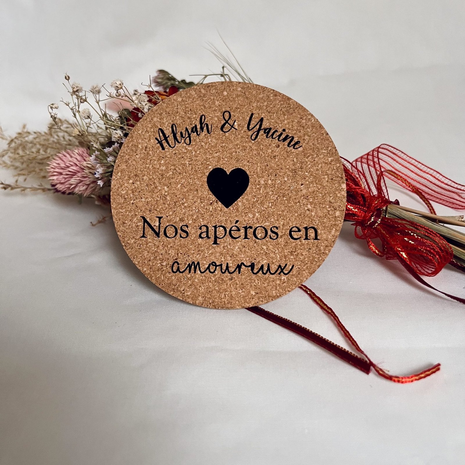 Dessous de verre en liège – Nos apéros en amoureux (lot de 2)