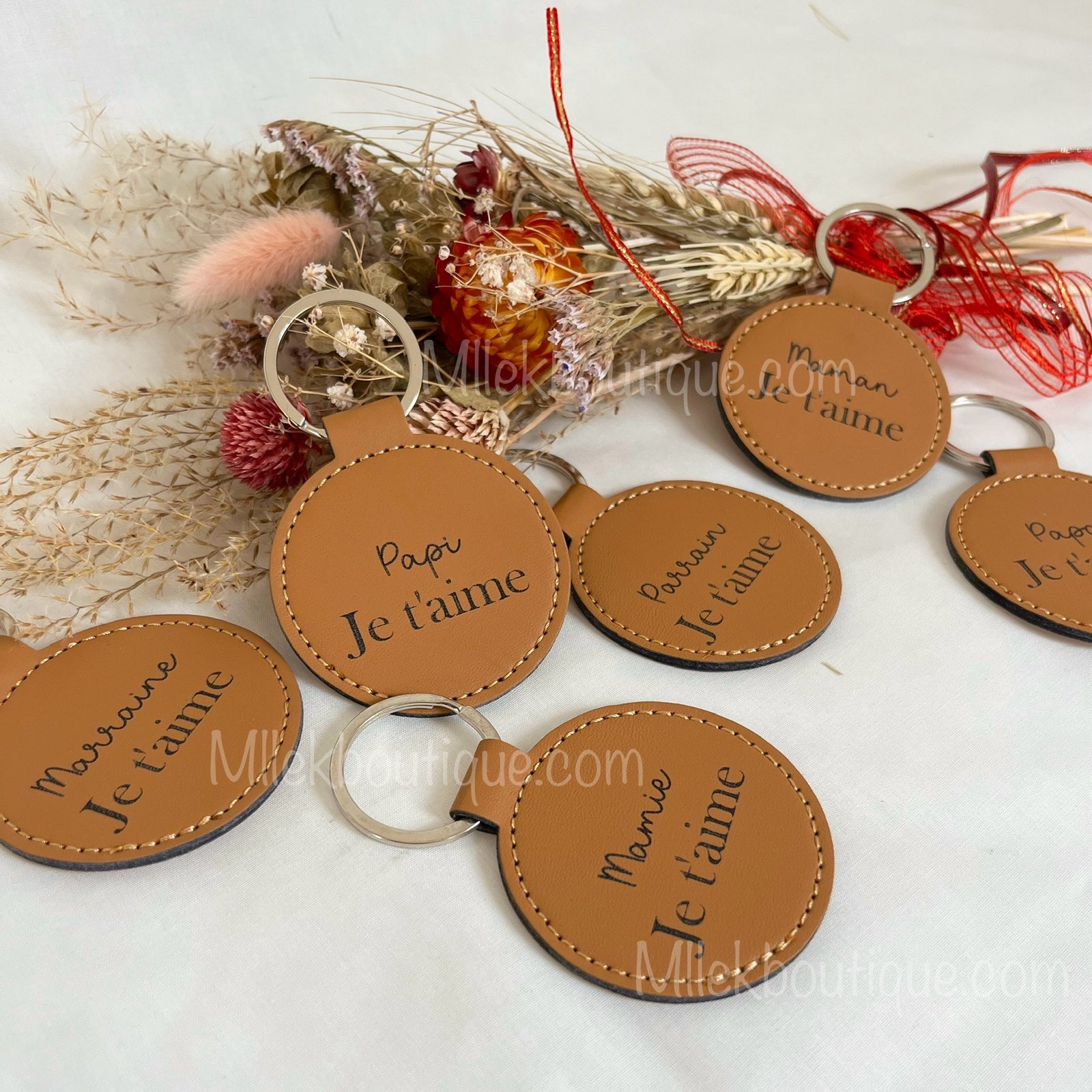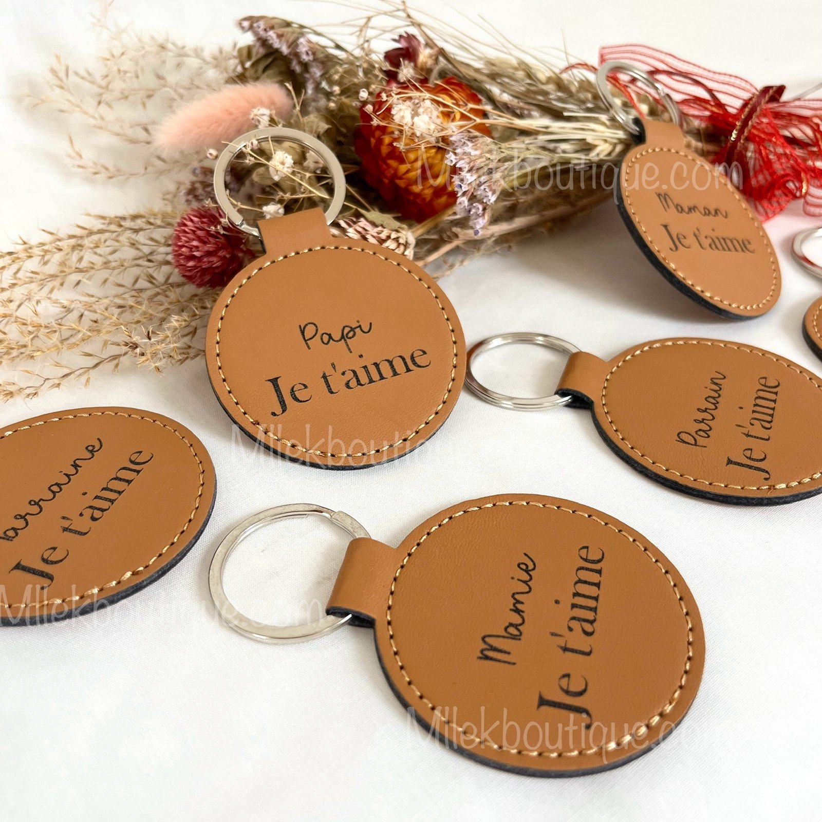 Ajoutez dès maintenant ce porte-clé « Je t’aime » en similicuir gravé à votre panier et