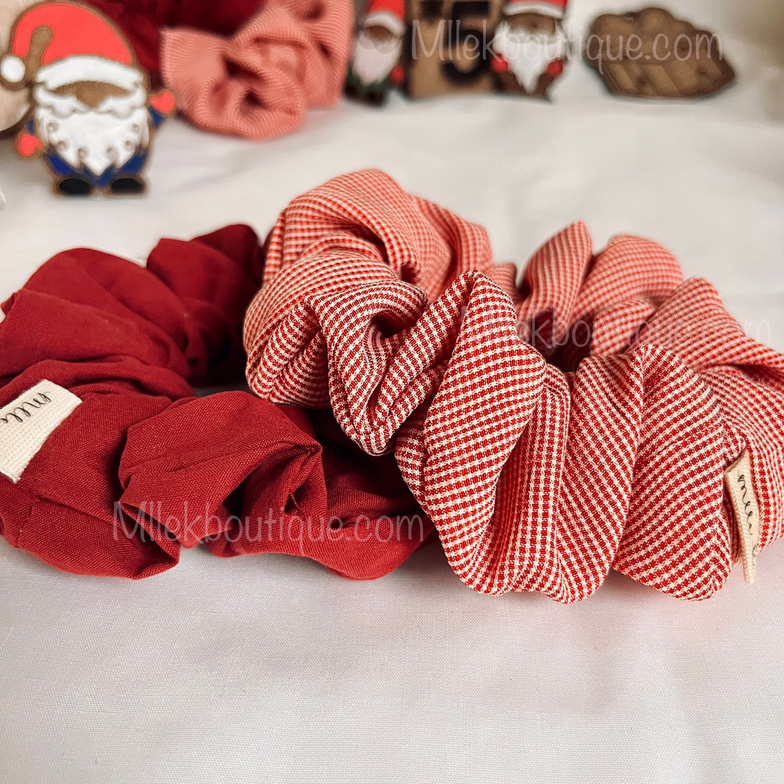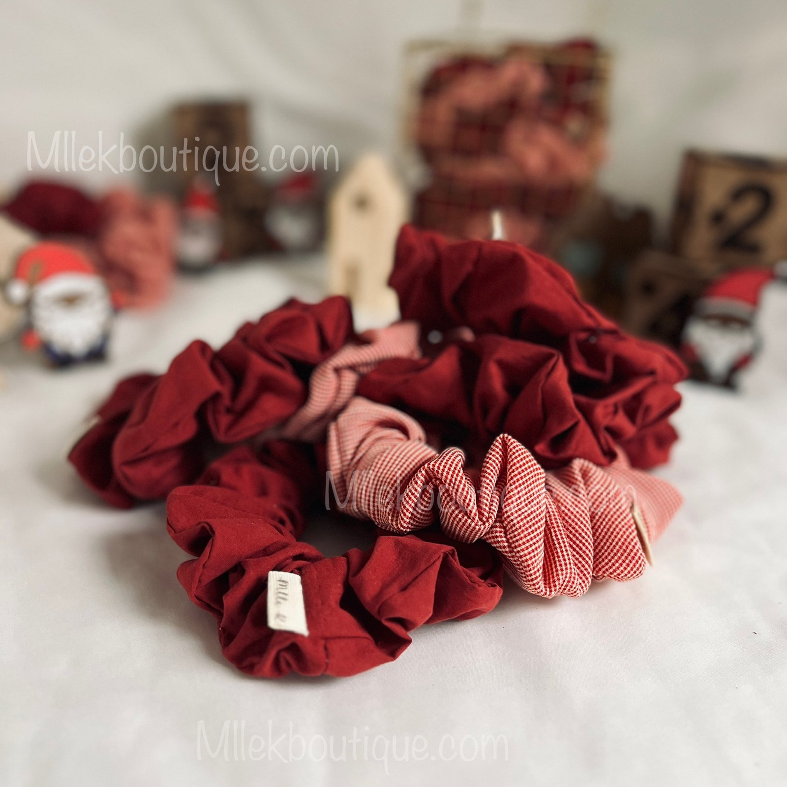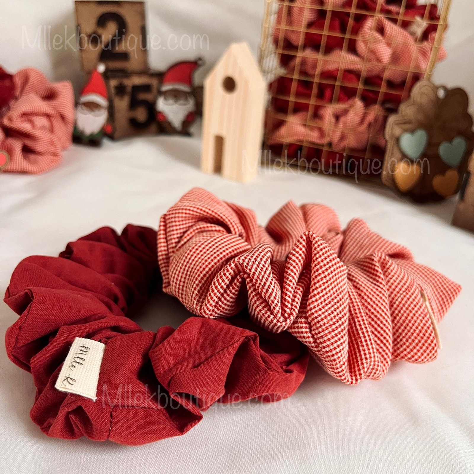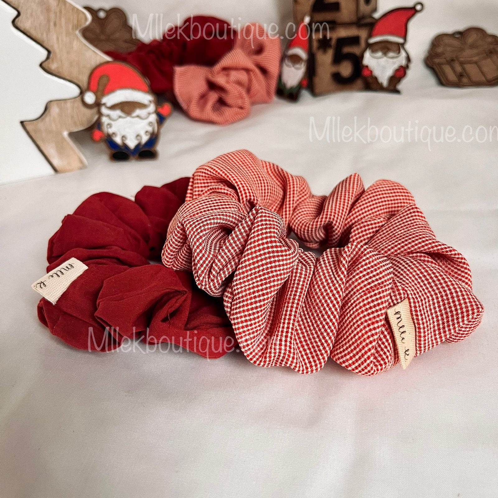 Ce lot de chouchous Rouge Bordeaux & Vichy Rouge et Blanc fait partie de ces pièces-là.