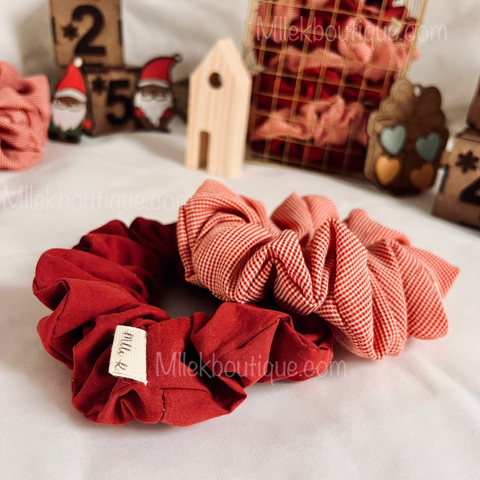 Lot de 2 chouchous : Rouge Bordeaux + Vichy Rouge & Blanc