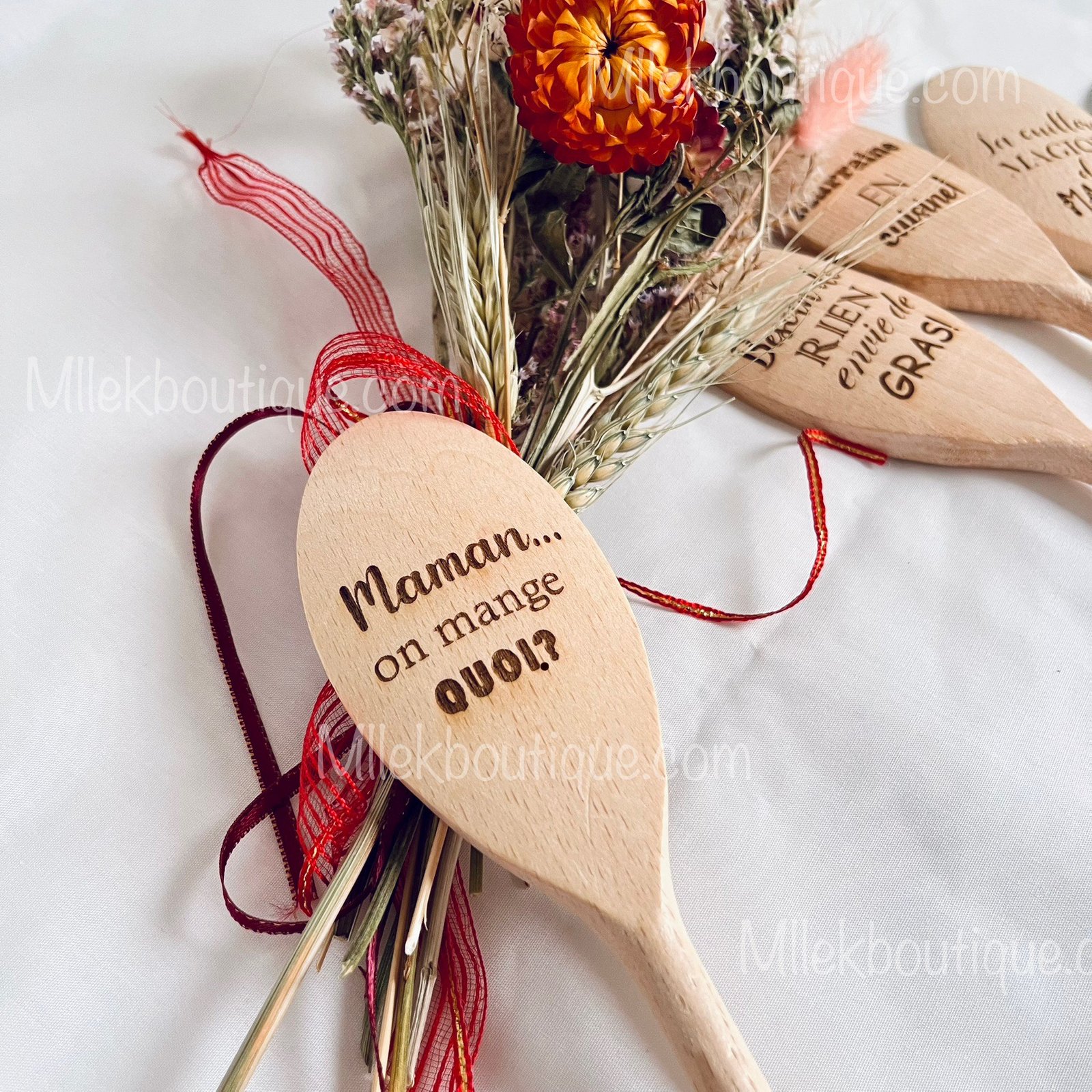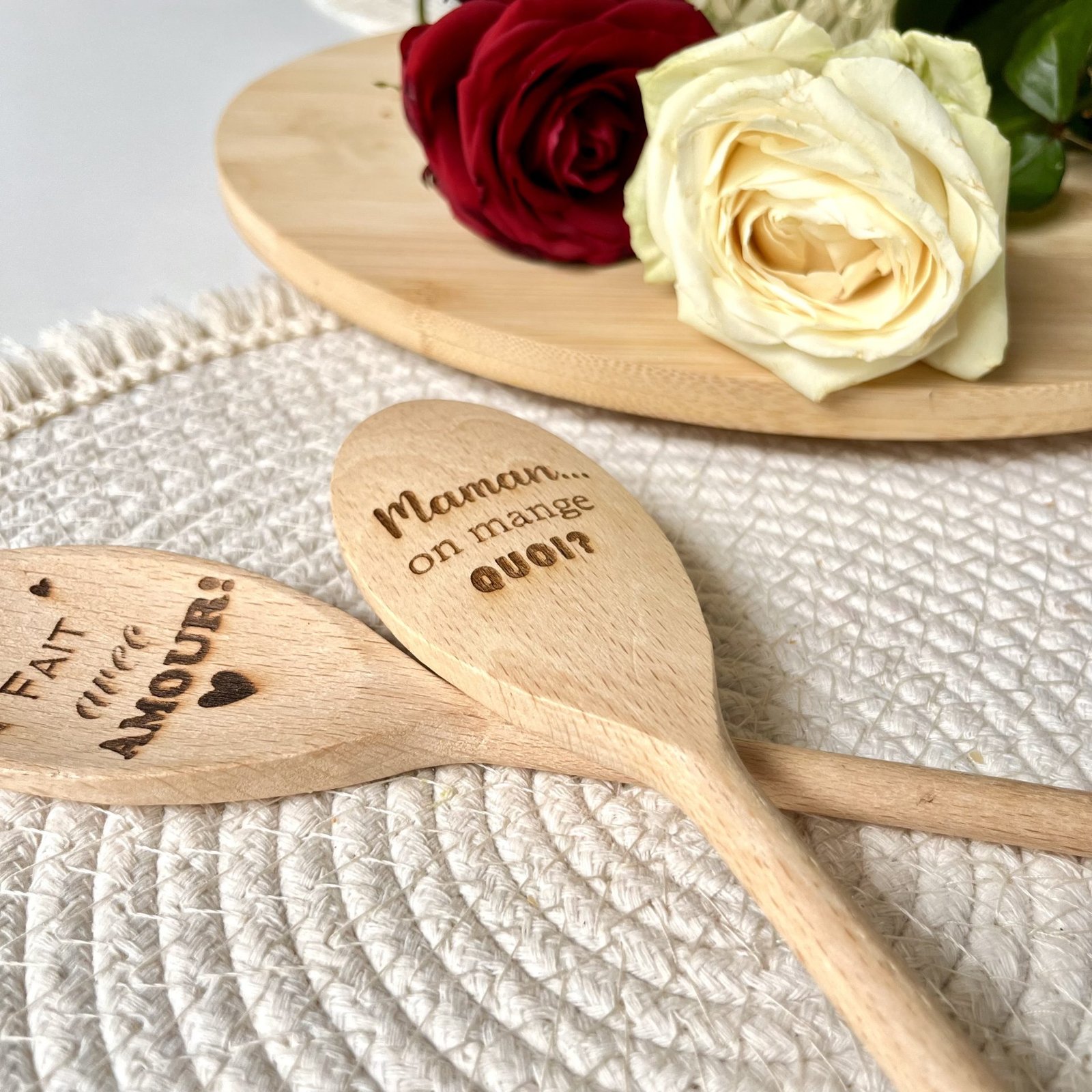 Cette cuillère en bois souriante gravée est l’accessoire parfait pour cuisiner avec amour et faire vos proches.