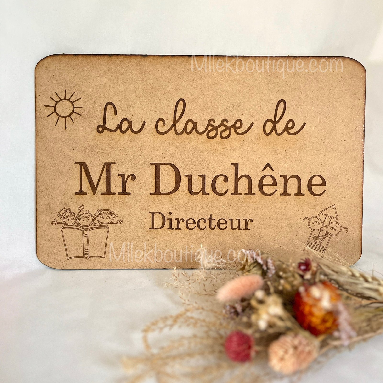 N’attendez plus pour offrir un cadeau unique à l’enseignant de votre enfant. Ajoutez la plaque personnalisé pour professeur à