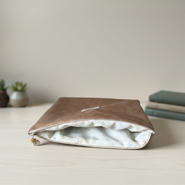 Chaque Pochette Élégance en Suédine Marron Glacé est entièrement doublée avec un soin méticuleux. À l’intérieur, vous découvrirez un coton délicat aux motifs subtils, offrant un contraste poétique et raffiné à chaque ouverture. C’est ce souci du détail caché qui définit le véritable luxe artisanal.