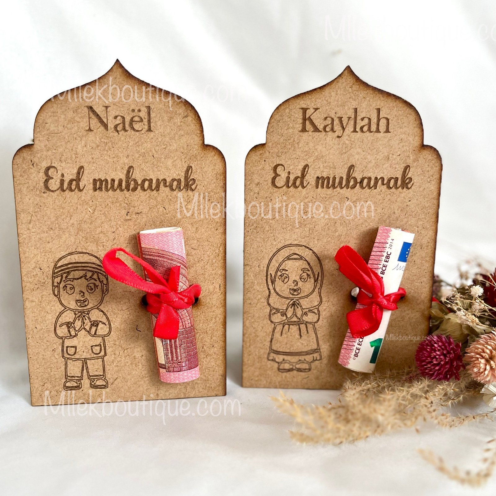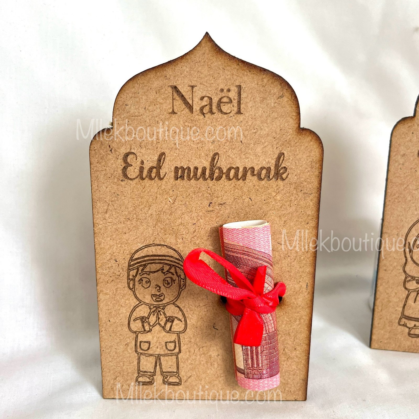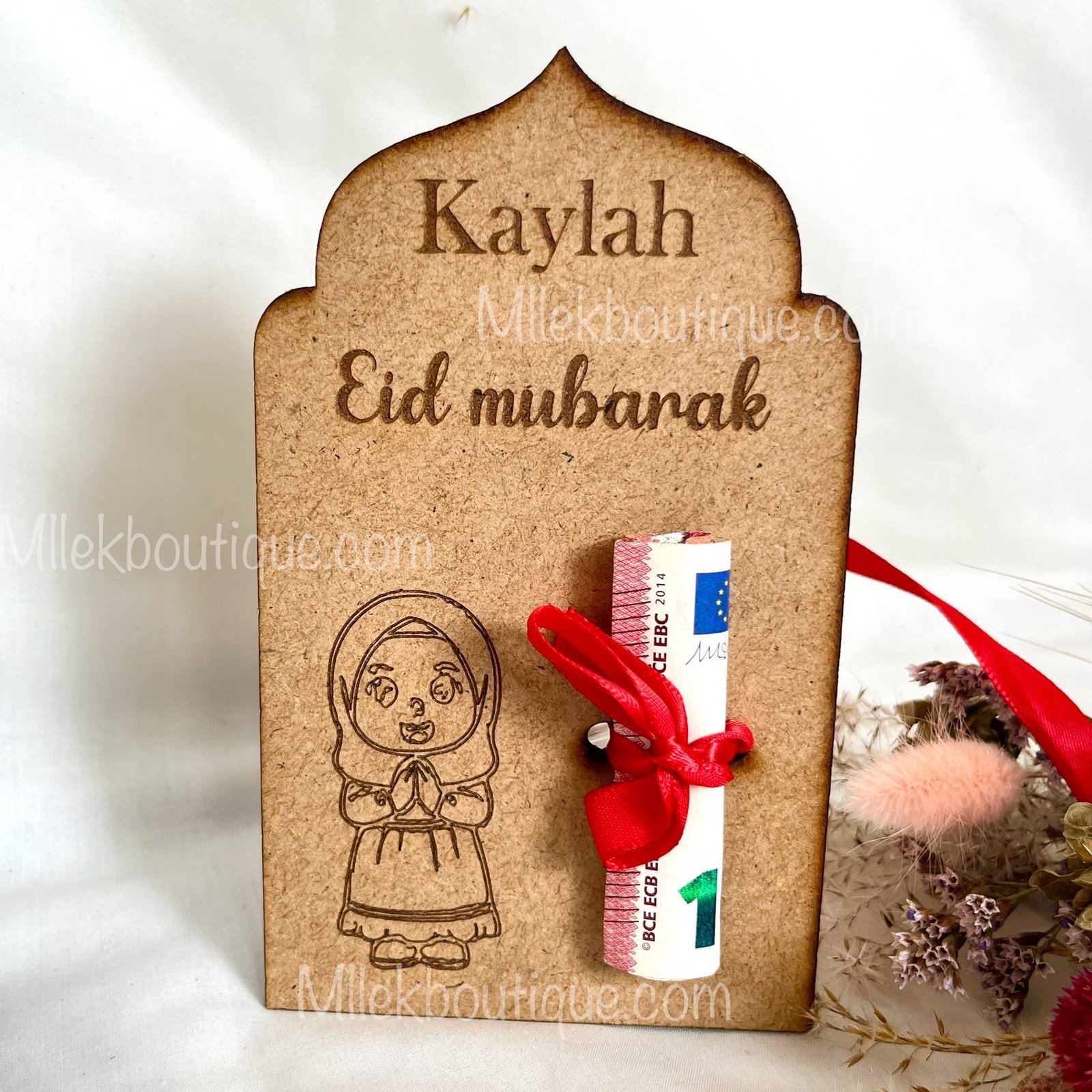 Offrez un souvenir unique et plein de tendresse à l’occasion de l’Eid avec notre porte-billet personnalisé en bois. Conçu spécialement pour glisser un billet avec amour, ce support en bois est gravé au prénom de l’enfant et décoré d’un adorable personnage au choix : fille ou garçon.