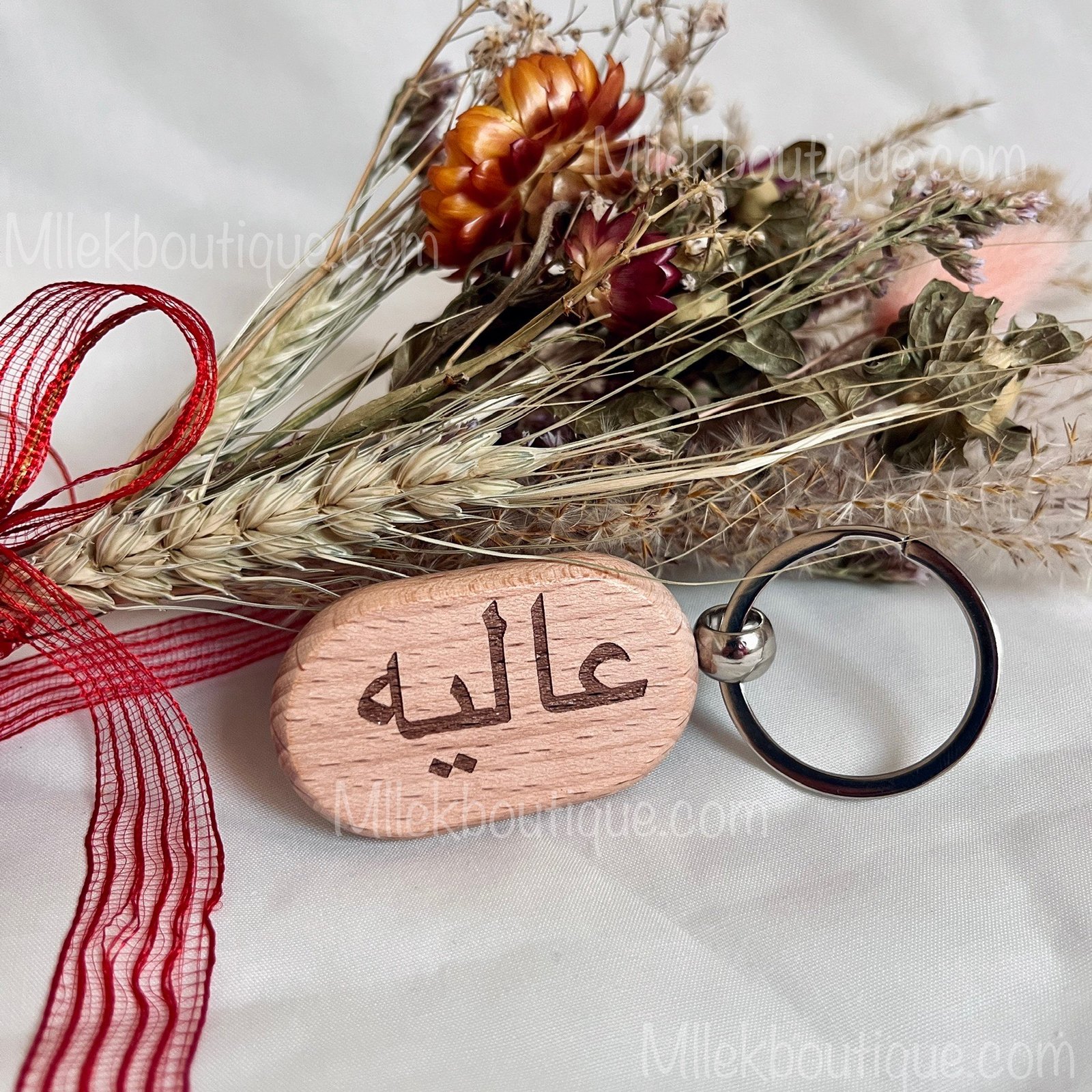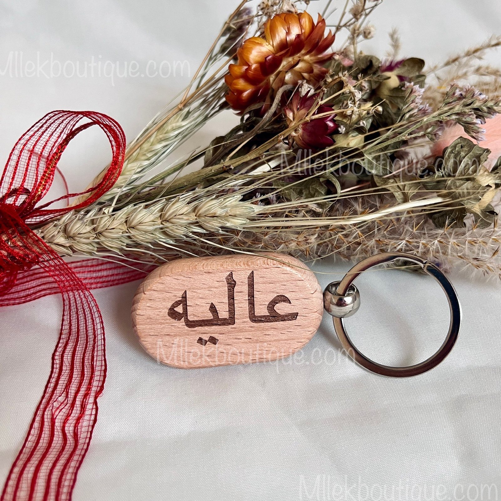 Offrez ou offrez-vous un porte-clés unique et personnalisé, gravé avec le prénom de votre choix en calligraphie arabe élégante. 🌿💖